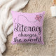 Comparta el mensaje que la instrucción es importante con esta almohada preciosa de la lectura de la mariposa que diga cambios de la instrucción el mundo.