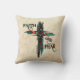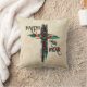 ¡Vestir su casa con este Cojín decorativo de la Cruz Suroeste "Uno de los bonitos"! Cuenta con una gran Cruz del Suroeste en Turquesa, Naranja y Negro sobre un fondo de piedra arenisca de Tan y las inspiradoras palabras cristianas..."¡Fe por miedo!" Diseño De Arte Original Del Artista Kerry Miller.