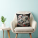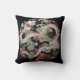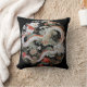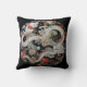 Esta almohada redonda presenta un par de dragones blancos de estilo asiático rodeados de flores sobre un fondo negro. Este diseño fue creado con la ayuda de AI.