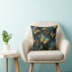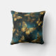 Una elegante almohada de tiro con un patrón de mariposas en brillantes tonos dorados y azul brillante.