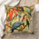 La bella arte botánica del vintage magnífico de los pájaros exóticos del loro del Macaw en un hábitat de la selva está en este Cojín decorativo. Las imágenes son public domain debido a los derechos reservados expirados.