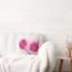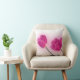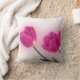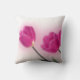 Esto es una almohada de tiro blanca adornada con una fotografía de varios tulipanes rosados.