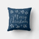 El guión moderno de Feliz Navidad arroja almohada. El diseño presenta el texto "Feliz Navidad" en tipografía blanca con bayas blancas y acento giratorio en un fondo azul. Hace el mejor regalo personalizado para usted, sus amigos, familiares e incluso vecinos. Tenemos más de 35 almohadas más de Navidades en nuestra colección que definitivamente te encantará. Por favor, compruébalo y obtén el mejor regalo de Navidades con deseos especiales para tu gente especial. Feliz Navidad!