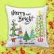 Merry y Bright en una fuente divertida. Arboles de Navidad caprichosos, ilustrados en el fondo, todos diferentes y únicos, ¡pero todos igualmente divertidos! El color de fondo de la almohada se puede cambiar fácilmente para adaptarla a sus necesidades.