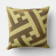Los colores dorados y marrón claro forman un diseño japonés vintage. Patrón de geometría en forma de T. Esta almohada decorativa presenta diseños antiguos que fueron cuidadosamente restaurados por la artista Alma Wad.