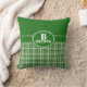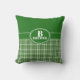Esta almohada de personalizado arroja un fondo verde oscuro sobre la parte superior y un patrón verde y pelado sobre la parte inferior. En el centro, hay un logotipo monograma con puede ser personalizado con su nombre inicial y apellido.