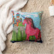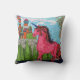 Una vez por el Cojín decorativo Time - Una pintura al óleo original (impresa) de un terreno de cuento de hadas con un caballo rosa/unicornio sentado frente a un colorido castillo, delineado por plantas verdes de protección. Las habitaciones de las niñas están pintadas en tonos pastel y son perfectas para las más pequeñas.