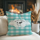 Añada un toque rústico a la decoración de su casa de campo con este Verde azulado Cojín decorativo de la granja Buffalo Plaid. El diseño de almohada presenta una vaca de granja en una etiqueta elegante y texto personalizado para que usted pueda personalizar con su nombre familiar en un fondo de patrón de gingham. Otros objetos de decoración de casa disponibles con este diseño.