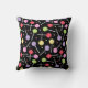 Pastel coloured candy lollipops patterned black pillow. There's customisable text on the front where you can add your name or slogan