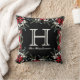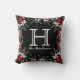El original ilustracion floral incluye poinsettias, freesia y bayas de invierno azules, enmarcando su nombre inicial y familiar en un campo de negro. Al revés, un patrón de banda negra coordinado completa el diseño. Una maravillosa almohada personalizada para añadir a su decoración Navidad o como un regalo encantador para la familia y los amigos.