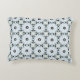 A decorative pillow featuring a symmetrical geometric pattern with blue, white, and brown hues shown from the front and back on a gray background.