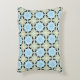 A decorative pillow featuring a symmetrical geometric pattern with blue, white, and brown hues shown from the front and back on a gray background.