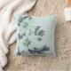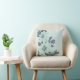 Cojín decorativo del navidad azul y blanco con los poinsettias grandes.