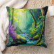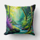 Cojín decorativo místico del río Forestal Una encantadora obra maestra que capta el atractivo sereno de un paisaje forestal, con un río sereno que refleja los tonos etéreos de verde azulado y morado, evocando una sensación de armonía pacífica.