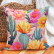 Esta almohada vibrante exhibe un jardín de cactus floreciente con un suave fondo rosa. Con suculentos suculentos con grandes flores amarillas, naranjas y rosas, el diseño rebosa de color y calidez. Perfecto para una decoración de inspiración suroeste, boho o veraniega, agrega un acento animado y alegre a los sofás, patios o habitaciones.