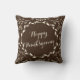 Una guirnalda bosquejada mano cerca las Felices Navidad del texto. El follaje botánico de hojas y las ramas rodean la guirnalda. El color de fondo es marrón. El otro lado dice la acción de gracias feliz, usted puede personalizar cualquier lado con su propio texto. Éstos las almohadas caseras del acento de la decoración son grandes para un tema rústico.