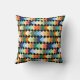 Esta almohada de tiro tiene un diseño geométrico de diamantes de color claro que se superponen en un campo de negro.