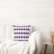 Esta almohada de tiro tiene un diseño Art Déco de hexágonos blancos con una línea negra en el medio y los diamantes rosados.