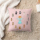 Cojín Decorativo Dibujos de ángel y gato lindos sobre rosa