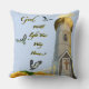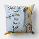 Encantadora almohada motivadora inspiradora de un faro con "La Cruz". El texto dice: "Dios iluminará tu camino a casa.