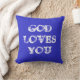 "DIOS TE AMA" EN CARTAS BLANCAS Y FONDO AZUL.