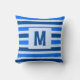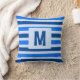 Esta almohada linda tiene rayas azules y se puede personalizar con una inicial.