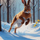 Contra el telón de fondo de un bosque nevado, la liebre se divierte en el abrazo del invierno, sus movimientos elegantes un testimonio de la belleza indómita del mundo natural. Esta cautivadora imagen estilizada en acuarela sirve como un suave recordatorio para apreciar los fugaces momentos de asombro que nos rodean cada día.