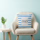 Un patrón fresco de rayas azules claras y blancas y un rectángulo gris con la palabra sra. Haga clic en personalizar para cambiar el monograma a su gusto.