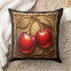 Cojín Decorativo Dos cerezas rojas brillantes con hojas doradas