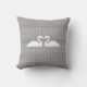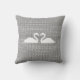 Dos cisnes y un patrón ondulado en Cojín decorativo de fondo gris y blanco plateado.