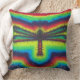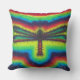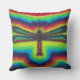 20" x 20" lanzar almohada con una imagen, a ambos lados, de una libélula de tinte rojo y verde sobre un tinte de corbata en forma de arco iris. Vea toda la colección de almohadas Psicodélicas de los años 60 en la DECOR | Sección de almohadas