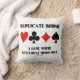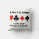 Muestra tu irónica actitud de doble puente con esta almohada de lanzamiento que incluye los cuatro conjuntos de cartas junto con el dicho "Duplicate Bridge A Game Where Intelligent Minds Meet". ¡Un puente memorable que dice tirar almohada para cualquier jugador de puente ávido!