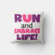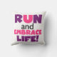 Si te gusta correr, correr 5 Ks, 10 Ks, media maratón o maratones, te encantará este colorido diseño de texto en morado y rosa que dice Correr y abrazar la vida! ¡Corre y abraza camisetas vitales, tazas, bolsas, tarjetas, pegatinas, cadenas de llaves, mousepads, estuches para iPhone, imanes y mucho más!