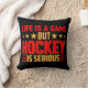 La vida es un juego pero el hockey es una almohada seria roja y dorada de hockey de texto.