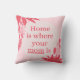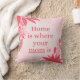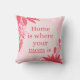 Cojín cuadrado de familia el hogar es donde está tu mamá rosa y rojo rústico