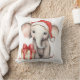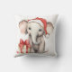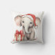 Un elefante cutáneo de acuarela vestido con un sombrero de Santa con un regalo de Navidad sobre un fondo blanco.