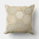 A seamless geometric pattern throw pillow featuring a refined grid of hexagonal shapes outlined in metallic gold. Each hexagon contains intricate designs such as parallel lines, cross-hatching, and abstract geometric motifs. The background blends soft cream and beige tones with a subtle marble-like texture, creating a sophisticated, luxurious aesthetic.