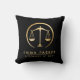 Abogado moderno de oro y negro en Law Pillow. Diseño presenta escala de icono de justicia, nombre y título en un fondo negro.