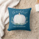 Esta elegante almohada tipográfica personalizada está decorada con una calabaza acuática y un eucalipto verde sobre un fondo azul verde azulado. Dice "Agradecido" en tipografía de escritura elegante. Personalizable fácil. Acuarela original © Michele Davies.