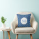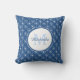 Una elegante almohada monocasco arroja un patrón clásico de círculos azules con corazones de moda en ellos. Personalice agregando su nombre y monogramado inicial al marco de círculo de moda. Parte de la colección de colores de verano de la decoración clásica de los corazones azules de la habitación.