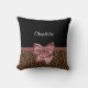 Manténgase de moda con esta elegante almohada de estampado de leopardo de piel marrón con una elegante cinta color rosa atada a un arco de moda. Personalice este moderno y elegante diseño de impresión animal añadiendo su nombre. Imagen plana impresa, no piel real ni cinta.