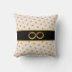 Moda hermosos y elegantes puntos de polka dorada y símbolo infinito sobre el Cojín decorativo de fondo beige. Elegantes Y Hermosas almohadas Decorativas. Decoración moderna y elegante.