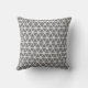 Cojín decorativo de patrones geométricos de triángulo gris y blanco.