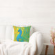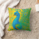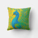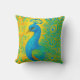Esta elegante almohada artística de pavo real alegrará su decoración con un pájaro de colores turquesa y azul sobre un fondo amarillo. Imagen generada con IA.