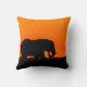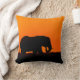 Tira una almohada con una silueta negra de un elefante pastoreando en la exuberante hierba de la isla de Sidudu, en el río Chobe, frente a una puesta de sol naranja.