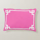 Decorativo rosa rosado caliente y blanco estilo clave griega geométrica de borde rectangular almohada con un fondo de color sólido. Se puede personalizar el estilo de letra, tamaño o color del serif monocasco moderno según sea necesario. Personalizar este diseño eligiendo tus colores favoritos para que coincidan con tu decoración de casa. Un bonito regalo de bienvenida para tu hija.