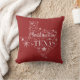 Sencilla almohada de vacaciones con "It's Christmastime in TEXAS" en un fondo rojo con texturas de diamante, y delineado con copos de nieve, estrellas de Texas y puntos.