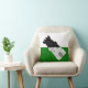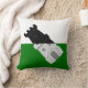 "Cortado plata y sinople, una torre en banda contrincada sable y plata." La parte posterior de la almohada tiene un patrón medieval en colores coordinados.