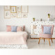 Este polvoriento diseño de estilo vintage, con estética clásica italiana mediterránea, está decorado en tonos blancos y azules, y presenta interiores elegantes, costeros y femeninos.