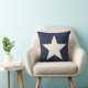 almohada azul marino náutico con un gran diseño de estrellas color blanco roto.